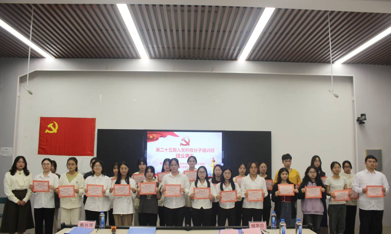 典礼在庄严肃穆的《国际歌》中拉开序幕。李国庆为典礼致辞,他指出全体学员要将培训学习的所感、所思、所做、所得应用到实践中,内化于心,外化于行。他向全体学员提出三点希望:一是筑牢理想信念根基,补足精神之钙,始终在思想上、政治上、行动上同党中央保持高度一致;二是持之以恒强化理论学习,用党的创新理论武装头脑;三是锤炼品德修为,练就过硬本领,担当时代责任,在学习生活中发挥模范带头作用。随后,优秀学员代表宁巧玲发言,她结合培训期间的所学、所想、所悟和自身成长经历分享心得体会,并表示将增强自身党性锻炼,提高思想政治觉悟,坚持以党员标准规范自己的言行,向优秀党员学习,争做国家的栋梁之材。最后,赖兴珲宣读表彰名单并颁发荣誉证书,典礼在庄严的国歌《义勇军进行曲》中落下帷幕。