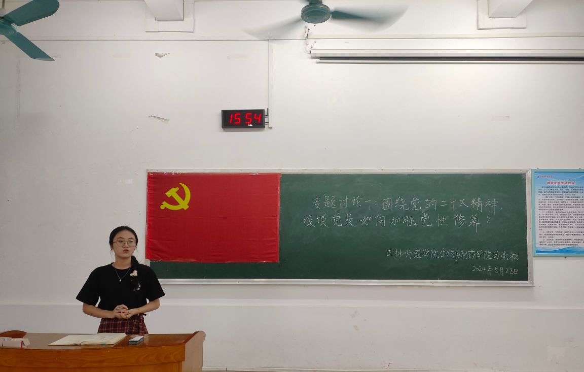 最后,生物科学系学生第二党支部巫春梅同志对此次讨论课进行点评。她肯定了大家的学习热情和积极态度,随后她强调,入党发展对象们应当切实将党的二十大精神融入到党性修养的每一个环节中去。她希望大家能够以更高的标准来要求自己,不断提升自己的政治觉悟和业务能力,争取早日成为一名合格的共产党员,为党和人民的事业贡献青春力量。