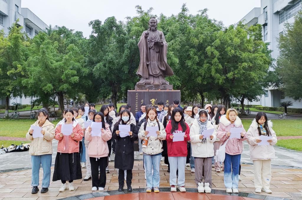 活动开始前,学生们提前到达孔子广场并在学生会女生心理健康部负责人的安排下整齐地列队站立。随后,全体学生高声诵读宪法的部分条款,用心体会宪法的庄严与神圣,晨读现场气氛庄重且严肃。充满仪式感的宪法晨读活动,让学生们对宪法有了更深刻的理解。活动结束后,学生们纷纷表示,通过此次宪法晨读活动,认识到了国有大法、心有信念的重要性,明白身为新时代大学生,应弘扬宪法精神,履行宪法使命,为建设富强、民主、文明、和谐、美丽的社会主义现代化强国而努力学习。