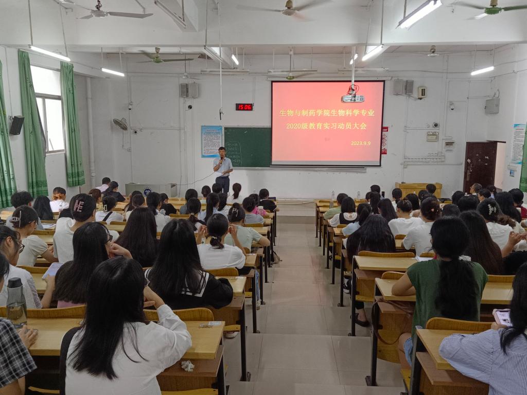 为切实提高德赢生物科学专业师范生的教学能力,加强教学技能有关理论的培养,更好地开展师范专业教育实习工作,引导师范生进一步明确实习内容和要求,9月9日下午,德赢于德赢东区厚德1101教室召开2020级生物科学专业实习动员教育会。德赢副院长贝永建,带队指导教师以及2020级生物科学专业全体学生参加此次会议。