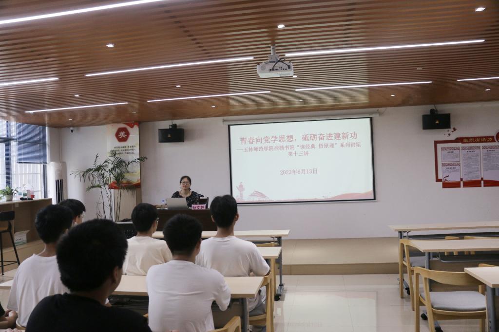 6月13日下午,德赢于德赢东校区挂榜书院开展“读经典悟原理”系列讲坛之第十三讲:青春向党学思想,砥砺奋进建新功。本次讲坛由孙文静博士主讲,德赢部分学生参加。
