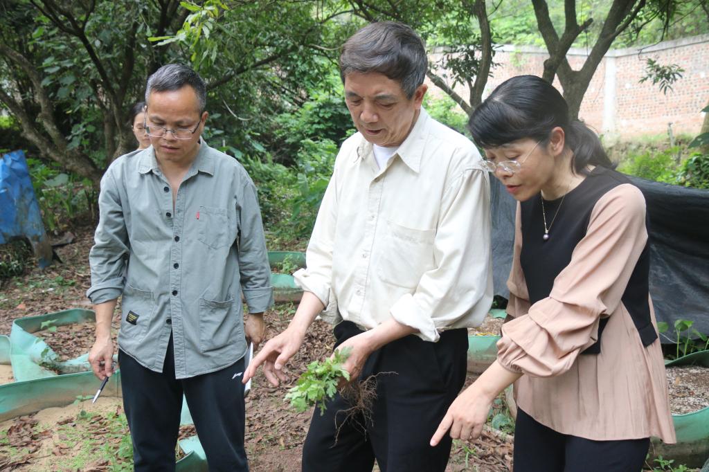 吴德峰教授详细介绍项目开发对象影菊的种属关系,从影菊的种苗培育、生长环境、病害防治等多方面进行详细指导。他指出,在种植前应深耕松土,足施底肥,确保土壤的透气性和营养性;种苗培育注意遮荫保水;移栽定植后,建议使用地膜覆盖以达到控杂草和保水肥的目的。最后特别强调:为保证品种性状稳定性,育苗一定选用营养繁殖方式进行;为了得到高品质的菊花,病害防治务必使用物理或生物防治方法。指导过程中,项目组成员针对过去一年在具体的种植实践中出现的问题也向吴德峰教授作了请教,吴德峰教授结合基地现有条件,都给予了对应的解决方案。指导双方交互充分。最后吴教授希望项目组成员在项目的开展过程中,能学以致用,勤劳实干,增长才干,进一步将项目做好做大。