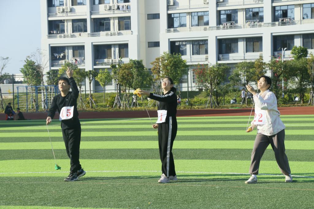 赛前,各组运动员们沉着冷静商讨安排战术,并积极进行热身训练,争取以自信饱满的精神状态参加比赛。随着裁判哨声令下,比赛正式开始,运动员们目光全神贯注盯着高杆铁环,用手捏着绣球尾线,运用向后挥动手臂,扭转手腕等技巧,将绣球抛掷高杆铁环内,绣球在空中划出一条条优美的抛物线。场外观众为运动员们加油助威声此起彼伏,络绎不绝,运动员们充分发扬团结合作、敢于拼搏的精神,其中德赢运动员陈静投球动作行云流水且精准,绣球多次入筐,赢得了观众一片喝彩。