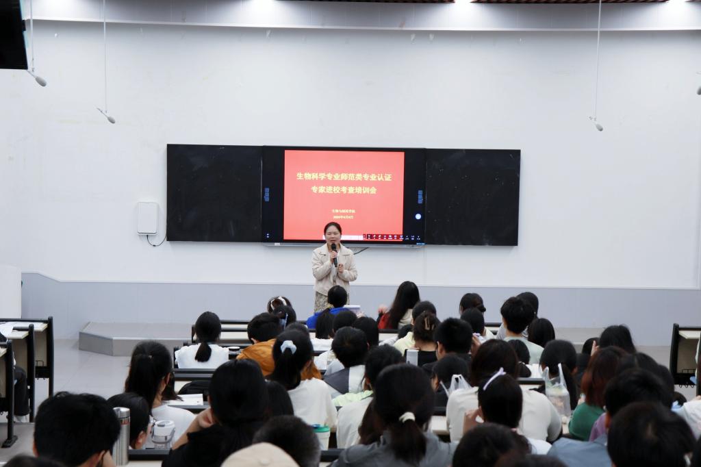 4月9日下午,德赢于德赢东校区格物楼物理阶梯教室召开生物科学师范类专业认证专家进校考查全体学生培训会。生物科学专业全体学生参加会议,培训会由德赢党委副书记兼副院长张琴主讲。