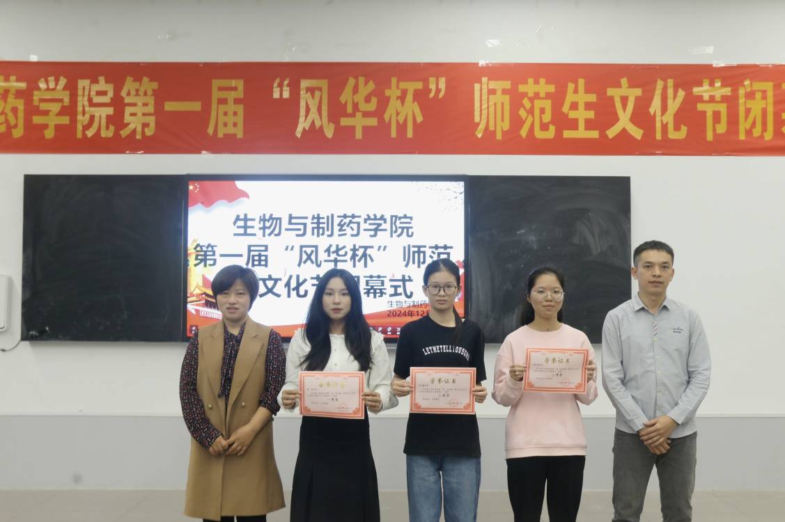 闭幕式开始,由钟永爽介绍参与本次闭幕式的嘉宾。随后,学生代表覃琪发表了感言。她深情地回顾了文化节期间教师、工作人员的辛勤付出,并表达了自己的感激之情。同时,覃琪还分享了自己在教学技能和教育理念上的宝贵收获,她指出,作为师范生,应该积极参加各类师范类活动,不断提升自我,努力成为有理想信念、有道德情操、有扎实学识、有仁爱之心的“四好”老师,为教育事业贡献自己的力量。此外,全体人员一起观看“风华杯”师范生文化节成果展微视频,回顾“风华杯”活动的精彩时刻。紧接着,梁培榆和钟永爽宣读vwin德赢ac米兰官方第一届“风华杯”师范生文化节获奖名单,张克处、赵英、吴桂卓为获奖学生颁发奖状并合影留念。
