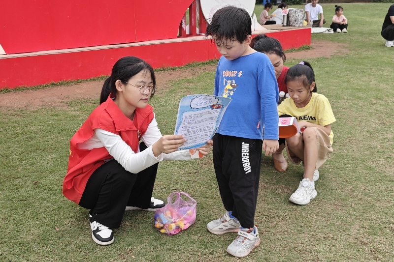 活动中,志愿者们通过分发传单的方式向游客科普毒品种类、毒品危害与艾滋病传播途径的相关知识。在互动答题环节,志愿者们巧妙地设计了一系列关于雷锋精神、雷锋事迹和禁毒防艾知识的趣味问题。活动现场,小朋友们聚精会神地听着志愿者的提问,每当问题抛出,小朋友们便迫不及待地举手抢答,现场气氛热烈而紧张。小朋友们纷纷表示,要以雷锋为榜样,做一个有爱心、有责任感的好孩子,同时也要时刻保持警惕,远离毒品的侵害。