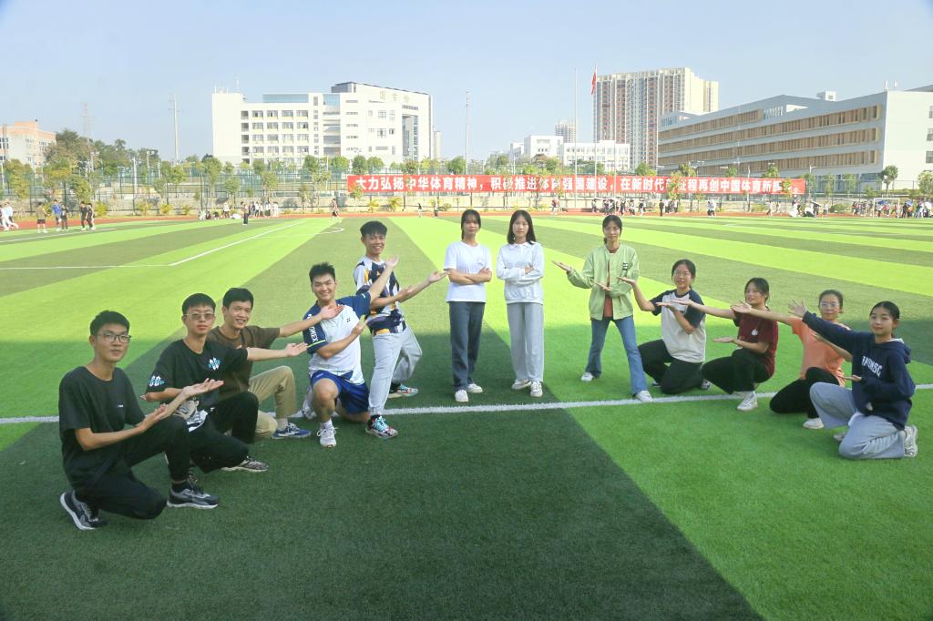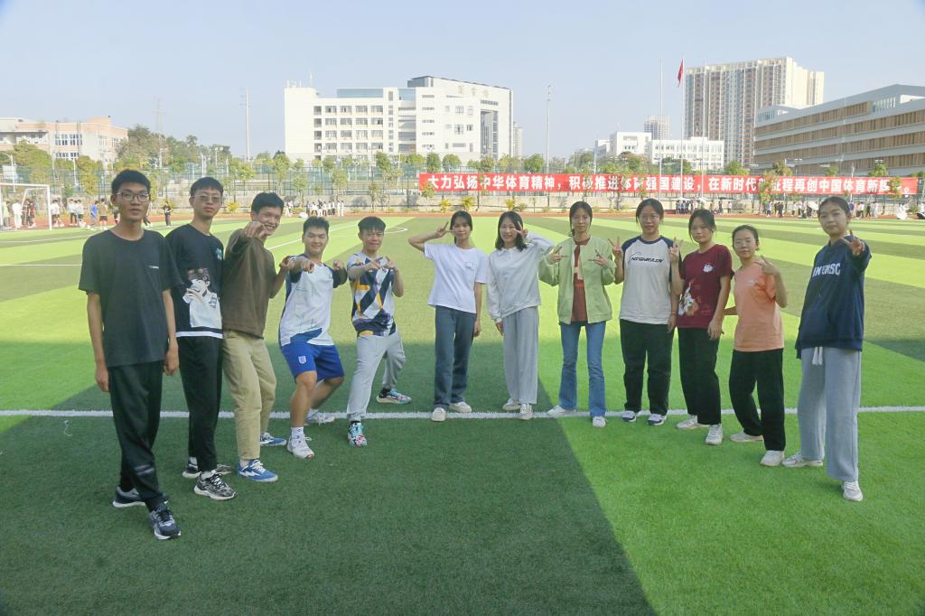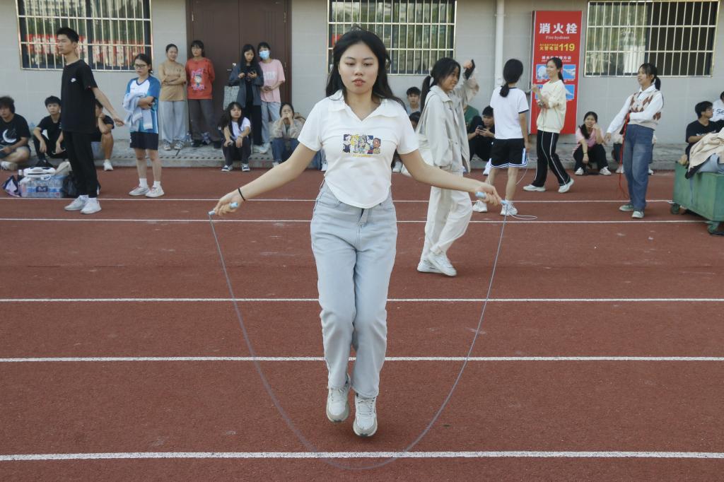 赛前,为了以更加饱满的精神状态迎接比赛,各二级学院的参赛选手积极地在现场进行热身运动和试跳。此次比赛包括三个项目,分别是单摇跳绳,集体跳绳和“8”字跳绳。比赛即将开始,单摇跳绳的参赛选手紧绷身体,蓄势待发。在发号比赛开始的信号后,选手们灵活甩动双臂,脚尖轻盈而迅捷,争分夺秒地跳动。紧接着,在集体跳绳的队伍里,负责摇绳的选手用力地挥动长绳,均匀地控制速度,跳绳成员齐心协力,把握跳绳的起落节奏,配合默契,轻松跃过。随后,“8”字跳绳的选手们反应迅速、紧张有序地从跳绳的侧面进入,呈“8”字形依次轮流跳过,循环往复。最后,各二级学院的参赛选手进行合影留念。