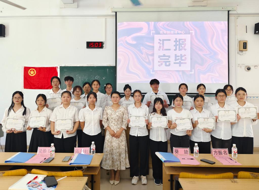 9月3日下午,德赢于德赢东校区博学楼2-101教室召开青年新媒体中心2023-2024学年述职评优暨聘书颁发大会。会议由廖子媛、杨钊主持,德赢辅导员葵婕、主席团成员陈剑虹、梁焕葵及青媒全体成员参加本次会议。