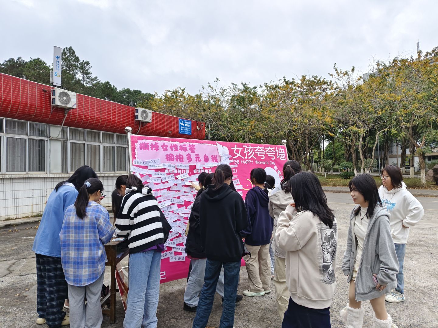 活动现场精心布置了一面"标签墙",墙上贴满了社会对女性的各种刻板印象标签。参与者们纷纷上前,亲手撕下那些曾经束缚自己的标签,并在原处贴上写有个性宣言的标签纸。随着活动的推进,原本布满刻板印象的标签墙逐渐蜕变为一面充满力量与勇气的"真我宣言墙"。这一转变吸引了众多学生驻足观看、拍照留念,大家纷纷在镜头前自信地展示自己的宣言,记录下勇敢拥抱真实自我的珍贵时刻。