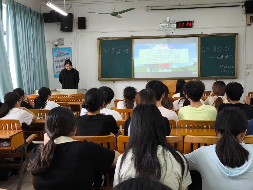 生科211班杨卓玲以“中华民族共同体”为主题,深入浅出地介绍了这一概念的含义和重要性。她以黄文秀、杨宁等优秀榜样为案例,让学生们深刻感受到了爱岗敬业、艰苦奋斗和不畏艰辛的大公无私精神。班主任白林壮老师对本次班会进行了小结,他强调只有各民族团结协作、守望相助,才能实现中华民族伟大复兴的中国梦。