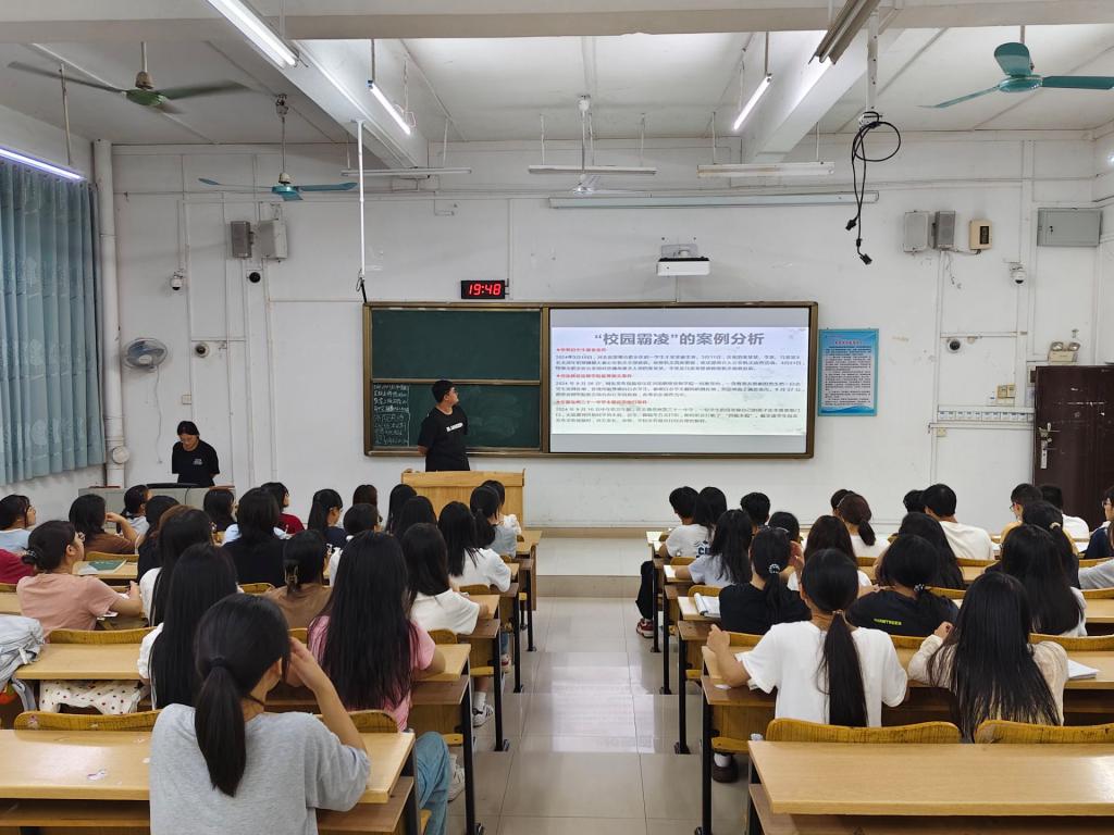 生物科学定向2022班的班长黎艺萍首先通过丰富的网络数据和当前形势,深入浅出地向学生们讲解了校园霸凌的概念及其危害性。她结合近期发生的校园霸凌案例,详细剖析了校园霸凌行为的表现形式和社会危害性,并为学生们提供了遇到校园霸凌时的应对方式,强调了实施霸凌者应承担的法律责任。黎艺萍鼓励学生们在遇到校园霸凌现象时,要勇于拿起法律武器,学会用法律手段保护自己,坚决向校园霸凌行为说“不”。